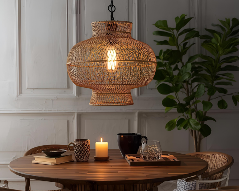 Replacing a standard fixture with a woven rattan pendant or lantern-style light can completely transform a room. Statement lighting: